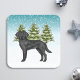 Pegatina Cuadrada Selva de invierno nevada azul de labrador negro