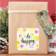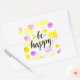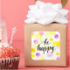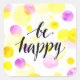 Caligrafía moderna cita inspiradora - estar contentos - en el fondo de los puntos de color rosa y amarillo | Bigstock® - Todos los derechos reservados.