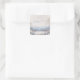 Capture the essence of tranquil, natural beauty with this elegant sticker. The design features a stunning, painterly landscape rendered in a soft, muted palette of dusty blue, warm beige, and frosted white. A serene, calm lake reflects the hazy blue mountains that rise in layers in the distance. Elegant, bare beige trees gently frame the scene, while the foreground is adorned with delicate, frosted white flowers and grasses, evoking a peaceful winter or early spring morning. The entire composition is set against a light, subtly textured beige background and enclosed by a minimalist, thin gold frame, adding a touch of understated sophistication. These stickers are perfect for businesses that evoke tranquility, elegance, and natural beauty, such as wellness centers or spas, fine art photographers, boutique stationers, memorial service providers, or luxury retreat venues. This versatile design can also be used to beautifully seal envelopes for elegant weddings, formal events, or sympathy cards, or as a sophisticated accent on party favors and gift wrapping.