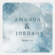 This square sticker features a serene watercolor design with soft blue and white hues, creating a calming and elegant aesthetic. The layout is centered around the names "Amanda & Jordan" in a classic serif font, accompanied by a heartfelt "thank you" message below. The abstract representation style emphasizes simplicity and sophistication, making it perfect for expressing gratitude at formal occasions like weddings or celebrations. The balanced composition and gentle color transitions evoke a mood of warmth and appreciation, ideal for personalizing gifts or favors.