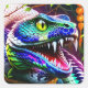 Pegatina Cuadrada Serpiente Cobra con escalas turquesa y azul vibran