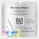 Un fondo falso plateado decorado con un polvo falso purpurina y equipos de limpieza. Personalice y agregue Su nombre, texto y su propio código QR a su dirección de sitio web.
