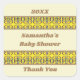 El fondo de este pegatina de ducha para bebés tiene un patrón geométrico circular con un fondo amarillo. Los carteles proporcionan un fondo sólido para toda la información de eventos. Personaliza rápida y fácilmente.