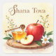 Pegatina Cuadrada Shana Tova Rosh Hashanah Flores de manzana y miel