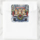 Pegatina Cuadrada Shiba Inu Christmas Red Truck Holiday