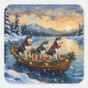 Pegatina Cuadrada Siberian Husky Christmas Boat Holiday
