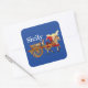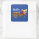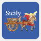 Pegatina Cuadrada Sicily Cart and Horse Carretto Siciliano Blue