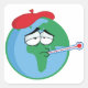 Un gráfico de un planeta enfermo con cara triste y termómetro. Este diseño parece realmente efectivo en estos Pegatinas