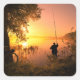 Pegatina Cuadrada Silhouette de Fisherman en el lago al atardecer