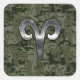 Pegatina Cuadrada Símbolo Aries Zodiac Camuflaje Digital Woodland