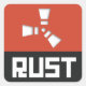 Símbolo RUST en transparente sobre fondo rojo, blanco RUST sobre negro.