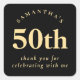 Pegatina Cuadrada Simple 50 cumpleaños oro negro gracias