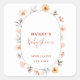Pegatina Cuadrada Simple Boho Wildflower Frame Baby Shower