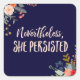 En mi opinión, estas palabras, que originalmente se hablaban para castigar a una mujer fuerte, son más adecuadas como un grito de guerra. Hasta el 30 de abril de 2017, el 50% de los beneficios de la venta de artículos con el diseño "Sin embargo, ella persistió" se donará a ACLU.
