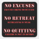 Sin Retirada. No Renunciar. Excelentes palabras motivacionales para cualquier área de la vida. Gimnasio, pérdida de peso, ventas, educación, deportes.