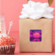 Una puesta de sol de neón iluminada con una estética de sintonización retro, con un horizonte de rejilla que se desvanece a lo lejos, con palmeras encerradas en el cielo. La paleta de colores combina rosa, violeta y azul, evocando un ambiente retro-futurista de los años 80.