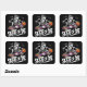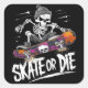 Pegatina Cuadrada Skateboard Edgy Halloween Skeleton Riding: Monochr