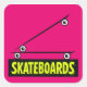 A bold and vibrant sticker featuring a minimal skateboard illustration and a 3D yellow “SKATEBOARDS” lettering.