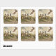 Pegatina Cuadrada Skyward Fluff Meadow Hare Whimsical Rabbit Family