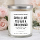 Smells Like .... This funny wedding Bridesmaid Proposal candle label is the perfect gift for a bridesmaid proposal and make them smile - this funny candle label is a great way to tell you cant do without your friends. You can include or delete your company name , and candle scent, and any other information you choose about your candle or your business.