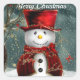 Pegatina Cuadrada Snowman de tarjetas de Navidad sonriendo con sombr