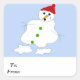 Un diseño caprichoso con un hombre de nieve que se derrite lentamente, sus piernas se han derretido y sus botones se están deslizando por su cuerpo.