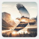 Pegatina Cuadrada Soaring Bald Eagle Over Mountain Valley Lake