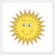 Pegatina Cuadrada Sol verano amarillo con cara feliz.