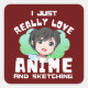 PEGATINA CUADRADA SÓLO ME ENCANTA REALMENTE ANIME Y SKETCHING