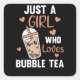Pegatina Cuadrada Sólo un Chica El té de la burbuja ama a Boba Kawai