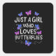 Pegatina Cuadrada Sólo un Chica que ama a la mariposa