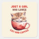Pegatina Cuadrada Solo un Chica que ama los gatos y el café (2)