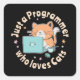 Pegatina Cuadrada Sólo un programador que ama a los gatos