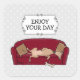 Couch Greyhound - Cute perezoso Greyhound durmiendo, relajándose o descansando en un sofá con almohadas y juguete de perro hueso de perro. No molestar. Derechos reservados © Angi Laframboise. Humor de perro divertido engendra regalos personalizados para los amantes del perro.
