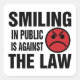 Pegatina Cuadrada Sonreír en público va en contra de la ley