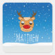 Pegatina Cuadrada Sonriente nevada de reno azul personalizado