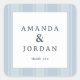 This square sticker features a minimalist and elegant design with a clean layout centered around text. The background consists of subtle vertical stripes in varying shades of light blue, creating depth without overwhelming the crisp white frame. Inside the frame, bold serif fonts display two names prominently, followed by a smaller "thank you" message, all arranged for perfect symmetry and balance. The overall style is modern minimalism, exuding sophistication and understated elegance, making it ideal for expressing gratitude or personalizing gifts.