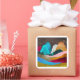 A vibrant, textured digital illustration featuring rounded fantasy mountains set against a dark sky full of golden stars. The style is modern and abstract, with a heavy emphasis on color contrast and layered textures.