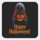Pegatina Cuadrada Spooky Ghost with Pumpkin – Happy Halloween