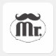 Pegatina Cuadrada Sr. Mustache Retro Vintage Hipster Regalos