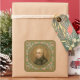 El noble y soldado vasco español convertido en sacerdote y teólogo, San Ignacio Loyola (1491-1556) fue fundador y primer General Superior de la Sociedad de Jesús (los Jesuitas). En este resumen, San Ignacio es de estilo jesuita. Usa una simple sotana negra, presumiblemente envuelta y cincelada en la cintura sin abotonarse por el frente, y una capa negra collareada. En su pecho, el Santo lleva un Christograma, el emblema oficial de los jesuitas: el monograma del Servicio de Salud con la H coronada por una cruz sobre tres clavos y rodeada por un sol. El Servicio de Salud (o iota-eta-sigma) significa las primeras tres letras del nombre de Jesús en griego; las tres clavos, por la Pasión; y el Sol, por el Hijo de Dios. Vinculados por una promesa de obediencia especial al Papa, los jesuitas realizaron trabajo misionero y educación en ortodoxia bajo directivas papales, jugando un rol especialmente importante en la Contrarreforma. El lema de los jesuitas en latín acuñado por su fundador es "Ad maiorem Dei gloriam (AMDG abreviado)" y significa "Por la mayor gloria de Dios". + Festín: 31 de julio + Crédito de la imagen (BK 050): Imagen antigua de San Ignacio de Loyola, S.J., publicada originalmente en cromolitografía por B. Kühlen, Mönchengladbach, Alemania, serie jesuita no numerada, finales del siglo XIX, de la colección privada de ephemera religiosa del diseñador.