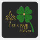 Pegatina Cuadrada St. Patrick's Day Four Leaf Clover Good Friends