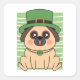Pegatina Cuadrada St. Patrick's Day Pug Dog Lucky Shamrock