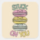 Stack of 3 Cute Colorful Kawaii Macarons with Text Stuck on You