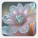 A sparkling pink and blue flower with a blue diamond bud covers this pretty sticker.