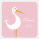 Estos pegatinas personalizados de agradecimiento son adorables adiciones a cualquier caja, lata o bolso de favores para la ducha de bebé. Cada pegatina cuenta con una cigüeña blanca. Disponible en rosa y azul. © Mood 4 Cute