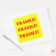 Estas etiquetas de envío cuadrado tienen un fondo amarillo con "¡FRAGILE!". Estos pegatinas son coloreados para alta visibilidad. Solo pelar y pegar. Estas etiquetas son perfectas para las grandes y pequeñas empresas. Este diseño se puede adquirir tal cual o puede utilizarlo como plantilla para hacer su propio diseño único. Se ofrecen otras etiquetas y diseños de envío/advertencia.