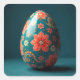 An ornate Easter egg against a dark teal background. The egg is predominantly teal and adorned with a vibrant, intricate floral pattern in shades of coral, pink, and white, accented with delicate gold detailing. Large, stylized flowers with prominent petals dominate the design, interspersed with smaller blossoms and swirling paisley-like motifs.