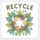 Pegatina Cuadrada Stylish Green & Faux Gold Recycle Symbol Leaves