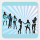 Pegatina Cuadrada Stylish Women Silhouettes Teal Blue Fashion
